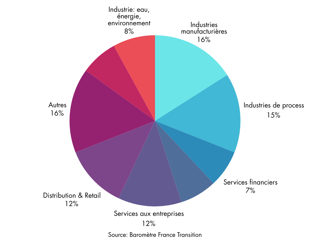 La finance de transition reste le premier pôle de demande (23 %), suivie par les Ressources Humaines (14 %) qui gèrent l’aspect social des restructurations.