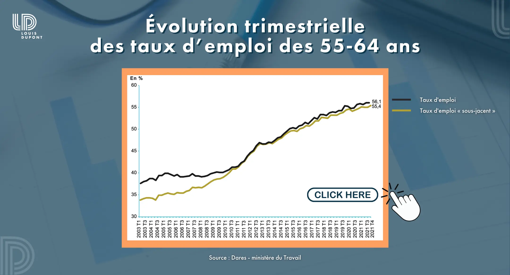 La Dares – ministère du Travail a publié le rapport « Activité des seniors et politique d’emploi » 2022 (données à la fin décembre 2021). Selon l’étude, en France, le taux d’emploi des 55-64 ans atteint 56 %.