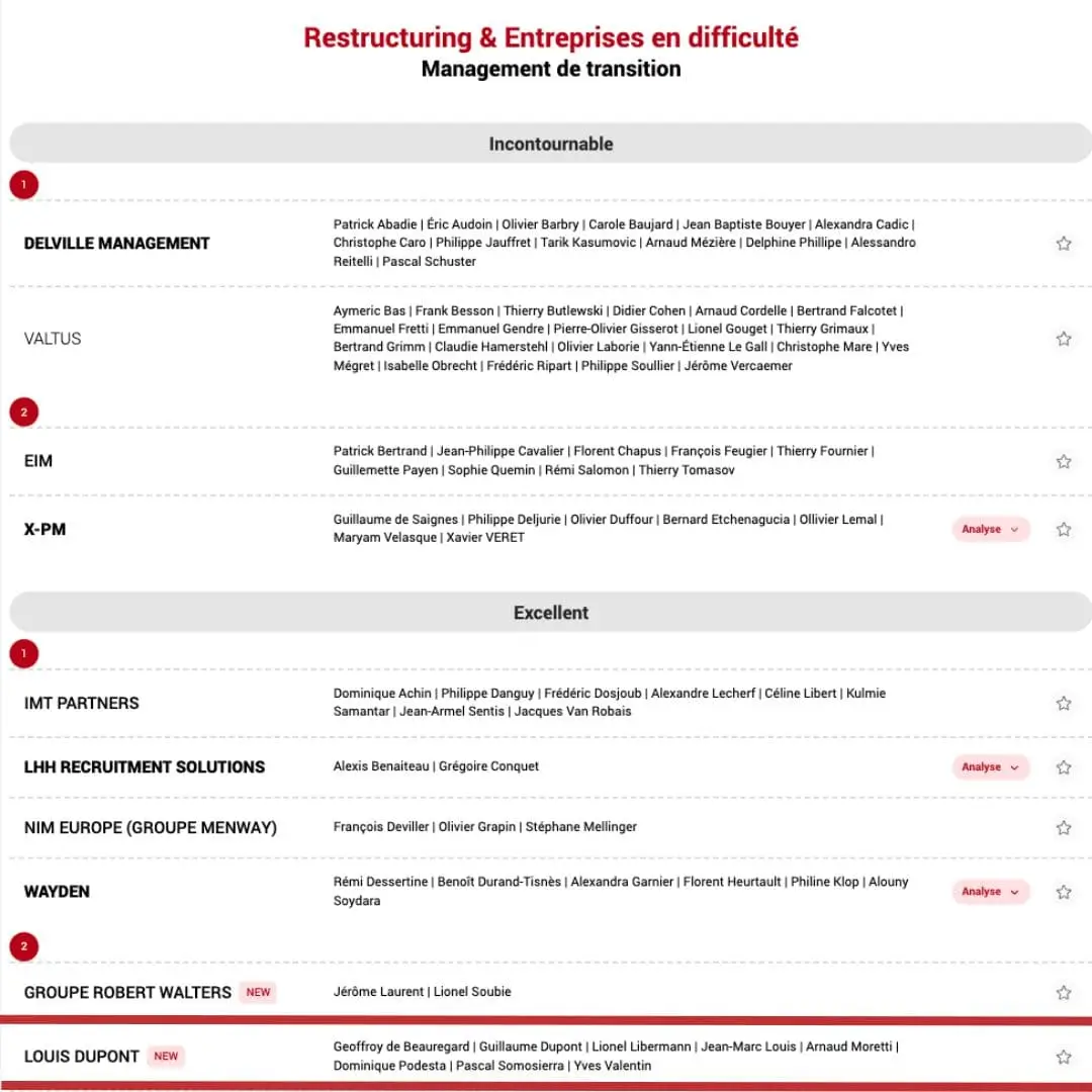 Le classement : https://www.leadersleague.com/fr/classements/restructuring-and-entreprises-en-difficulte-management-de-transition-cabinet-de-conseils-france-2024