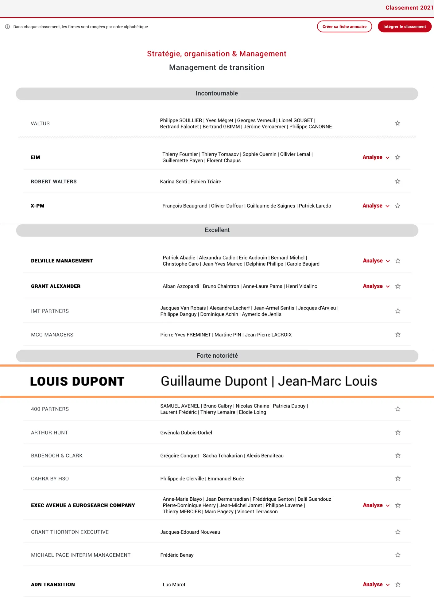 Ainsi, en 2021, Louis Dupont a su se distinguer et s’est positionné parmi les meilleurs cabinets de Management de Transition.